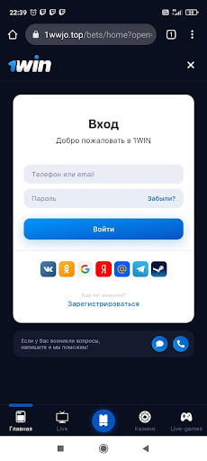 Чтобы осуществить вход в личный кабинет через моб версию 1Win, откройте сайт букмекера в браузере мобильного телефона. Так как дизайн сайта адаптивный, система сама распознает, что вы вошли со смартфона, и откроет для вас упрощенную версию БК.