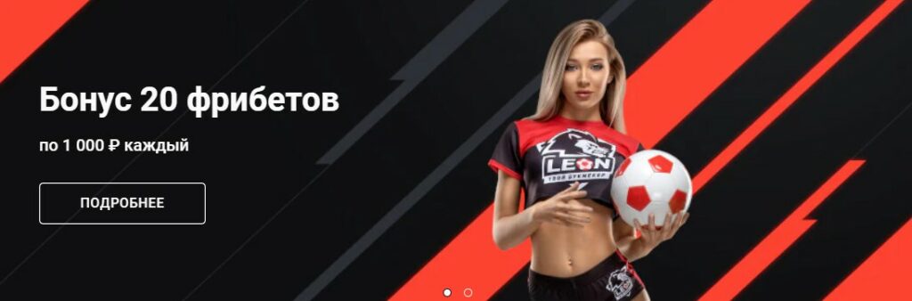 Букмекерская контора Леон подготовила акцию для всех новых клиентов БК. Ее условия максимально просты и прозрачны, а получаемый игроком бонус колоссален – до 20000 рублей фрибетами могут зачислить клиенту при принятии условий одноименного бонусного предложения.