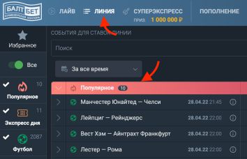 Линия – список матчей, которые еще не начались и вариантов пари для них. Линия отличается от лайва новыми разделами – «Популярное» и «Экспресс дня». В «Популярном» вы найдете все топовые игры, которые начнутся сегодня. Например, если сегодня проходит полуфинальный матч Лиги чемпионов, он обязательно будет в этом разделе.