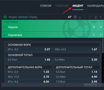 Акцент – раздел лайва букмекерской конторы «Балтбет», в который вы можете добавить нужные игры и просматривать коэффициенты на основные рынки этих игр. Сразу же можно сделать ставку, если увидите подходящую котировку. Удобный функционал, которого мы не встречали в других букмекерских конторах.
