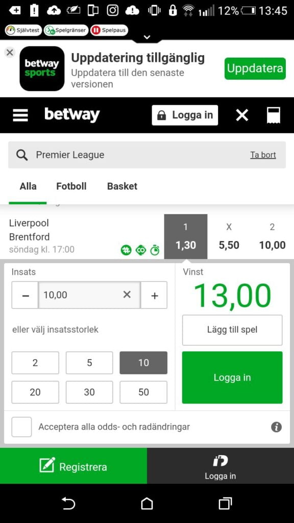Правила заключения пари в Betway не отличаются от правил игры в других БК. Для ставки на Betway на Андроид: