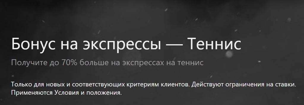 - Подходят только исходы вида «Победитель матча», «Кто выиграет первый сет», «Пари на сет», сделанные на матчи Большого Шлема, Кубка Дэвиса, Кубка Билли Джин Кинга, ATP, WTA, мирового Челленджера.