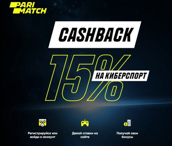 Букмекерская контора Париматч предлагает кэшбек в размере 15% на киберспорт. Срок действия этой акции – до 12 декабря 2021 года. Кэшбек начисляется на проигранные ставки от 300 рублей на события с коэффициентом от 1.50 и более. Максимальная сумма возврата в период действия всей акции – 2000 рублей.