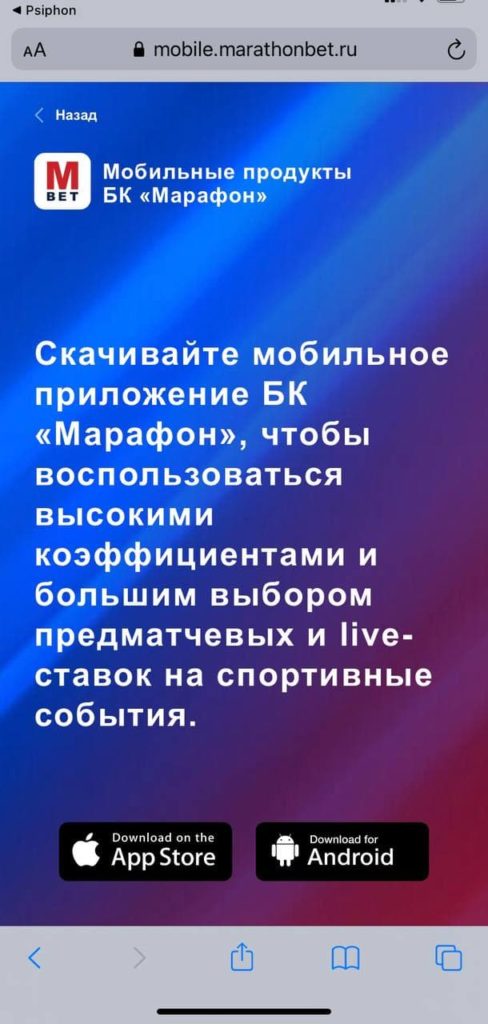Обратите внимание, что скачать приложение «Марафонбет» в российской версии могут только пользователи из РФ. На территории других стран работает либо международная версия Marathonbet, либо местная версия букмекерской конторы. Для каждой из них разработано собственное мобильное приложение iOS, которое можно найти и скачать в App Store.