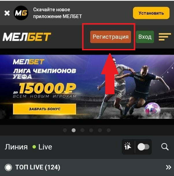 Зарегистрироваться в Melbet можно с ПК, телефона или планшета. Перейдите по ссылке выше с удобного для вас устройства и кликните на кнопку «Регистрация».