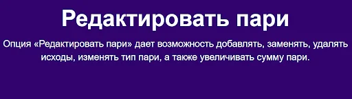 - Опция «Редактировать пари» доступна только для тех событий, для которых открыта «Досрочная выплата».