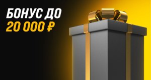 Букмекер предлагает новым игрокам стартовый бонус 100%, но с ограничением до 2500 рублей. Есть увеличенный бонус – до 20 000 рублей, но для этого нужно зарегистрироваться через приложение. Еще один бонус – 1000 рублей фрибета за пополнение счета на 500 рублей.