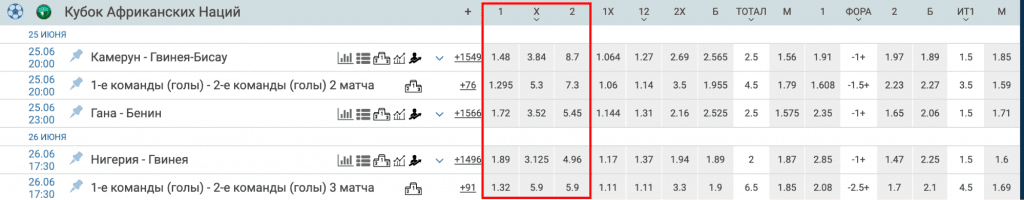 Рассмотрим каждый из видов более подробно. Для лучшего восприятия возьмем футбольный поединок Кубка африканских наций 2019 Нигерия - Гвинея.